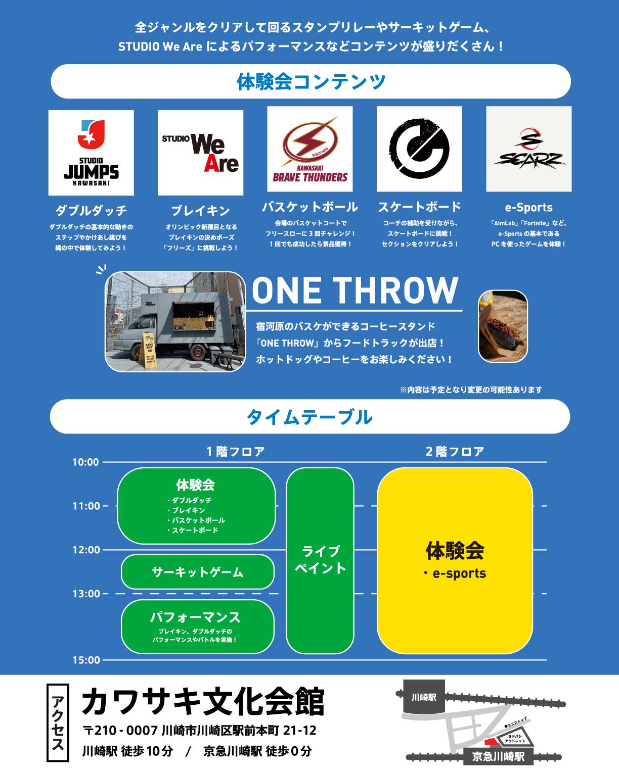 | 内容 | ・全ジャンル合同イベント ・スケートボード体験会の企画・運営 ・アートワークショップの実施 |